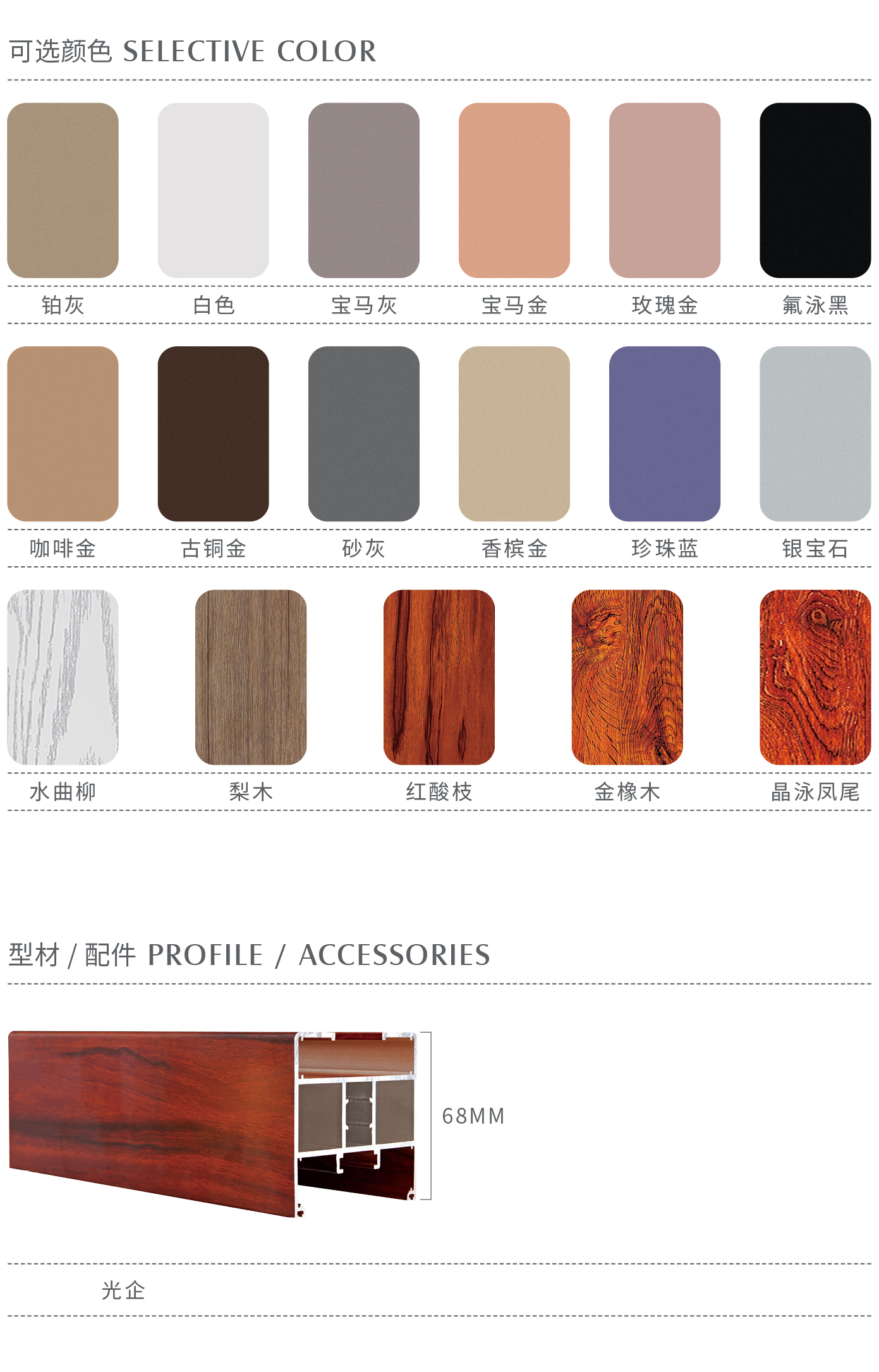 铝材颜色:红酸枝